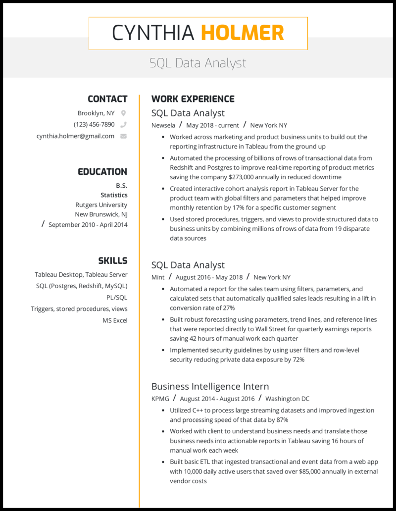 Enter your details below to get our full set of cv samples, delivered straight . Use rocket resume's senior data analyst resume editor. Most data analysts will want to use the reverse chronological resume format for presenting their employment history (and educational credentials too). To create an impactful data analyst resume, it is essential to understand the role and attached responsibilities. Good examples of achievements for a data analyst resume · completed market analysis, resulting in a 21% increase in sales.